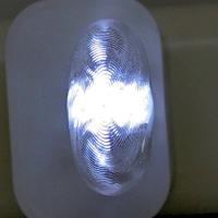 USB ポートにさしこんでつかう,ちいさなライトです.1 個の白色 LED の光を 3D 印刷製で 3×2.4×1 cm のシェードがひろげます.パソコンのそばを照らしたり,電源アダプタとくみあわせてフットライトなどとしてつかえます.シェードには 2 種類のパターンがあります.厚さ 1 cm ほどなので,超薄型 PC の横にさしても机にぶつかることはありません.