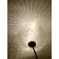 LED を透明でとても軽くて美しく輝くシェード (セード) でつつみました.付属の足 (輪) にのせてスタンドにすると,さまざまな角度で照明できます.テーブルランプやフロアランプとしてつかうとテーブルや床・壁などに美しい陰をおとしますが,角度をかえると陰がさまざまに変化します.