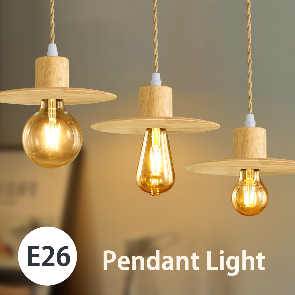 ペンダントライト LED電球付き 天然木 E26 フィラメント電球 シーリングライト 照明器具 天井照明 吊り下げ 装飾器具 コード付き レトロ アンティークライト