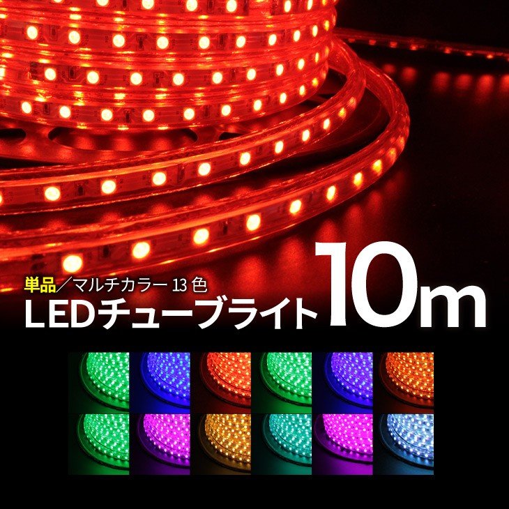 LEDチューブライト 10m 【チューブ単品】 RGBマルチカラー LED ロープライト クリスマス イルミネーション 高輝度 17パターン