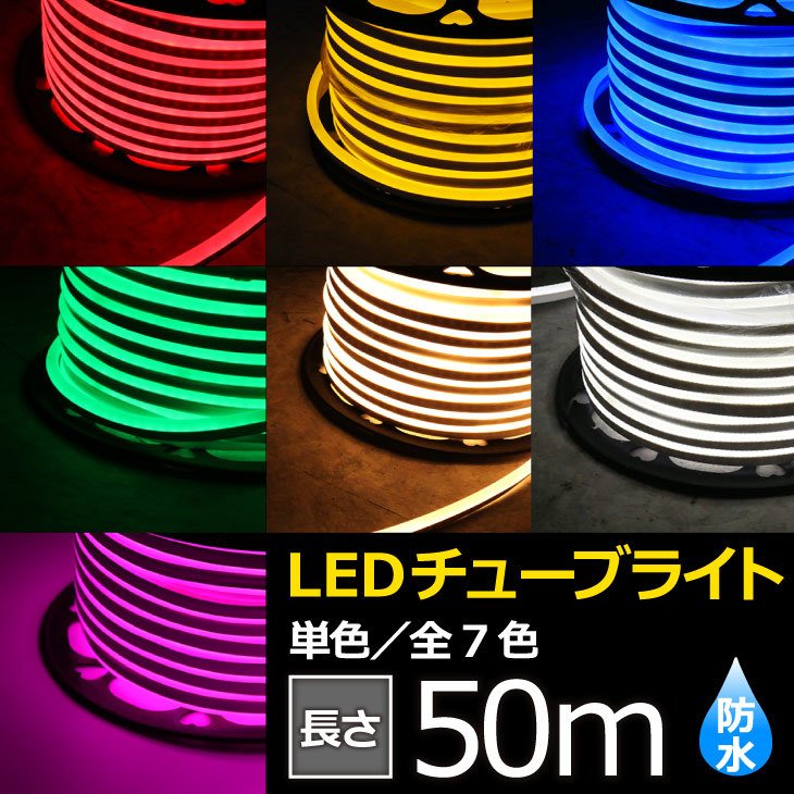 電飾 50m LEDチューブライト イルミネーション 全7色 高輝度 テープライト ロープライト 片面発光 モチーフ 間接照明 商業施設 テーマパーク 植栽 造形施工