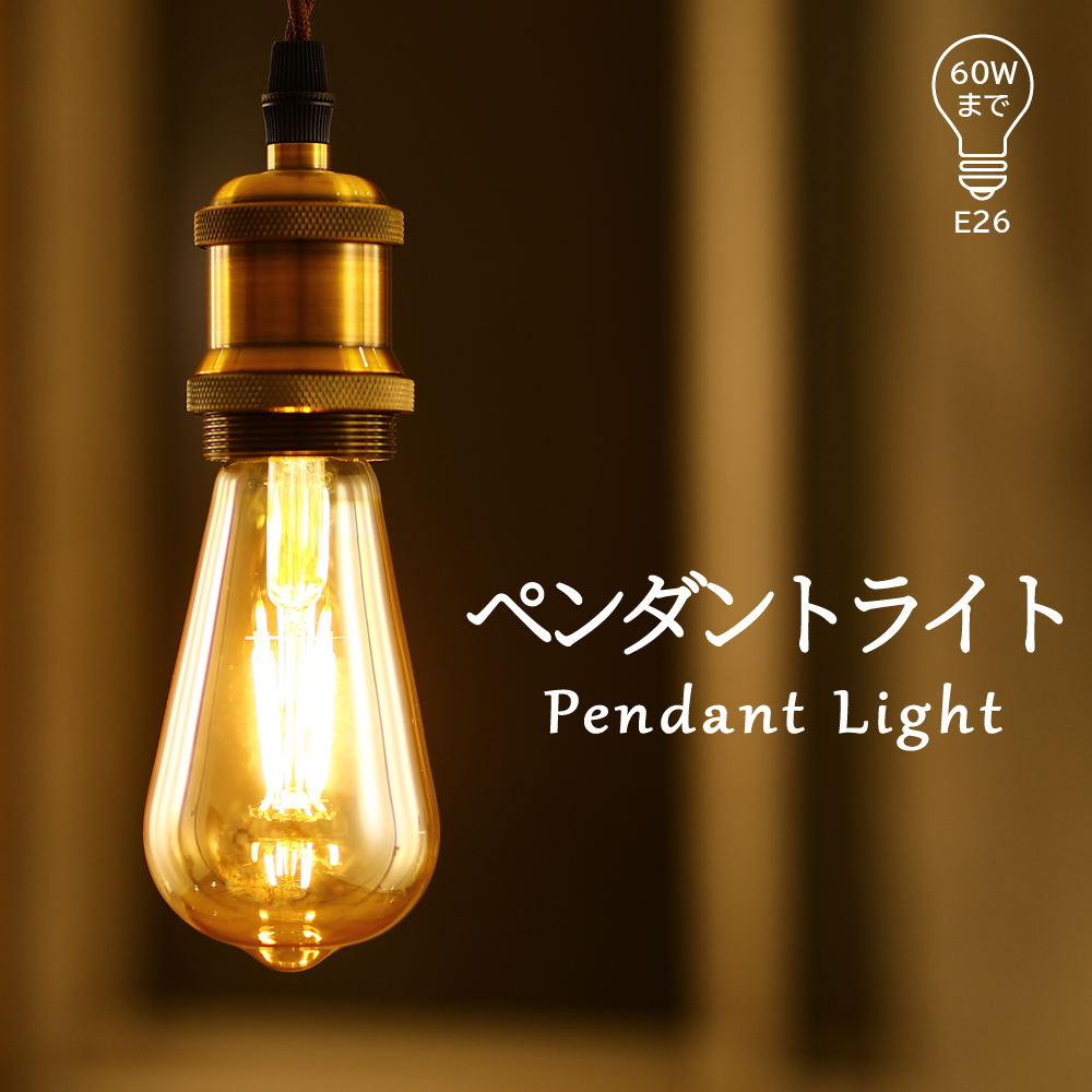 ペンダントライト LED電球付き E26 フィラメント電球 ライティングレール用 照明器具 天井照明 吊り下げ 装飾器具 コード付き レトロ アンティークライト