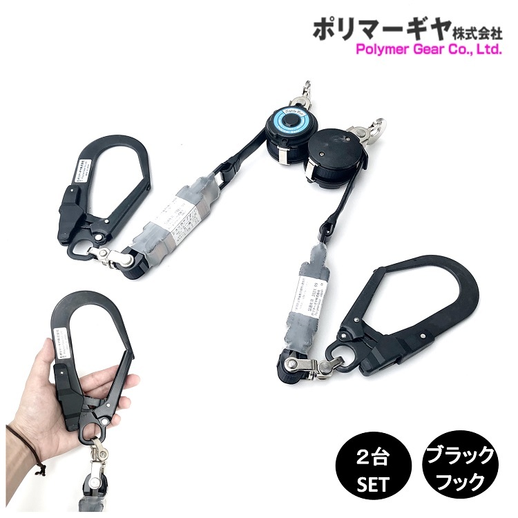 【ブラックフック左右2台セット】新規格 第一種適合 ポリマーギヤ ダブルランヤード 黒フック リール巻取式 DRNC-M51S セット 巻き込み防止ストパー付き
