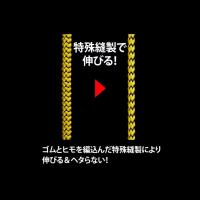 ・ゴムとヒモを編みこんだ特殊縫製で840mm〜最大1400mmまで伸びる