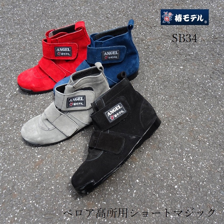 椿モデル エンゼル ANGEL 安全靴 高所作業靴 本革JIS規格 ベロア革 SB34 マジックタイプ ショート 25~28cm