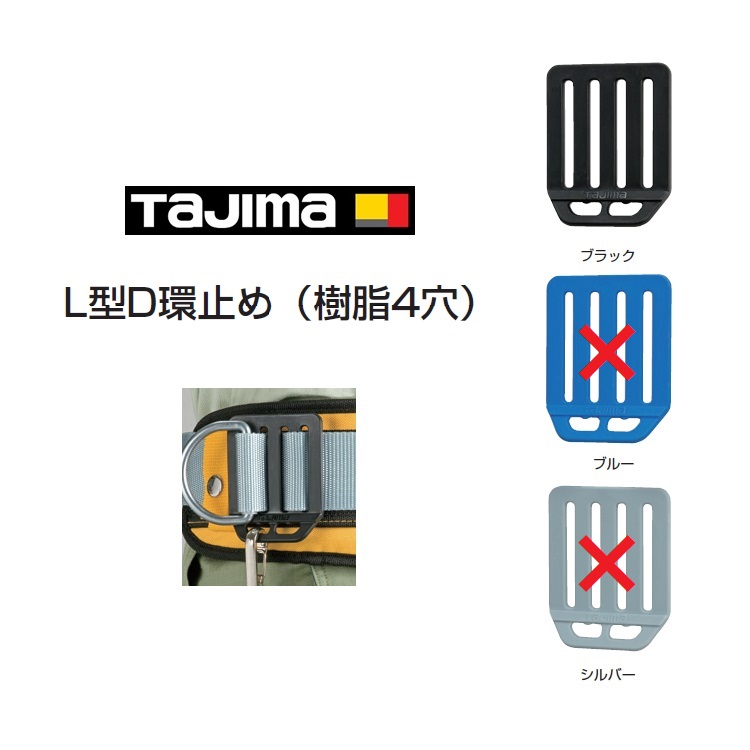 タジマ TAJIMA L型D環止め 樹脂製4穴 安全ロープ取り付け穴 TA-LPD4BKブラック/TA-LPD4BUブルー(廃盤)/TA-LPD4SIシルバー(廃盤) フルハーネス用アクセサリー