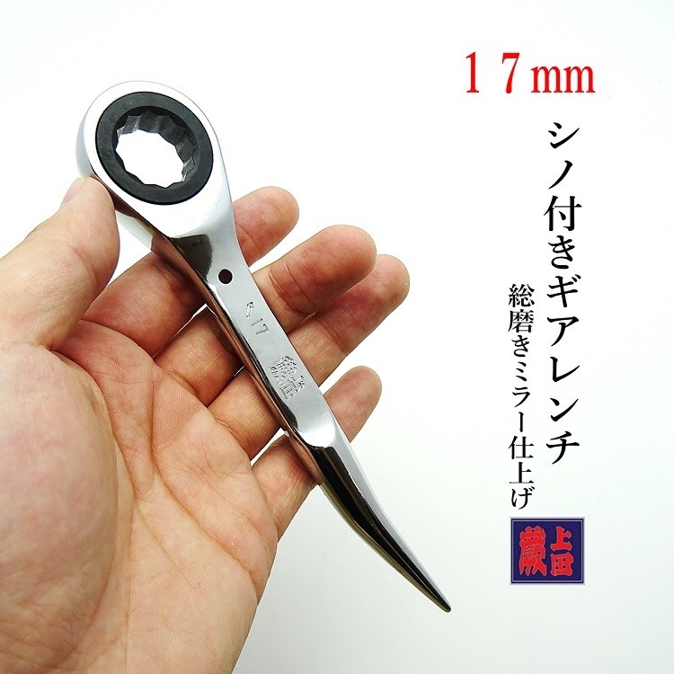 【ギアレンチ】蕨上田 特注 ギアレンチ 17mm シノ付きギアレンチ 総磨き ミラー仕上げ 極短 作業工具