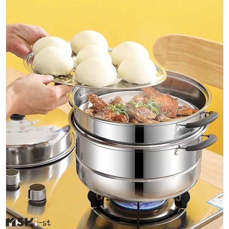 蒸し器 二段三段 26/28/30cm 大容量 ステンレス せいろ ガス火対応 蒸し鍋 スチーム調理器 両手鍋 蓋付き ステンレス鍋 調理鍋 蒸し料理