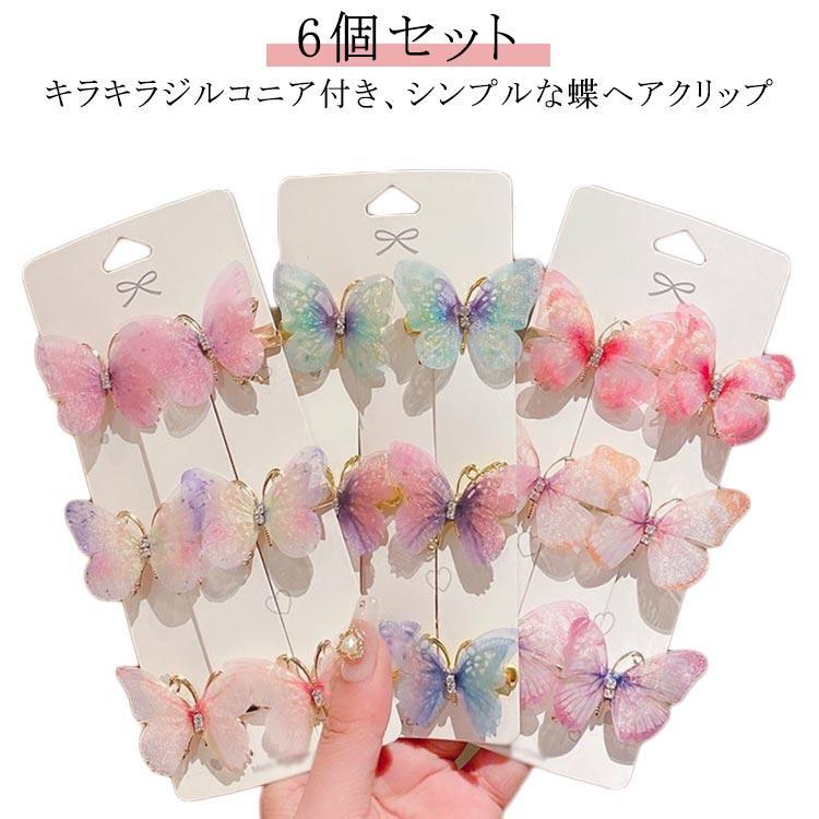 6個セット ヘアクリップ バタフライ 蝶々 キッズ 女の子 子供用 こども用 子ども用 ヘアアクセサリー 髪飾り プチプラ プレゼント ピンク パープ