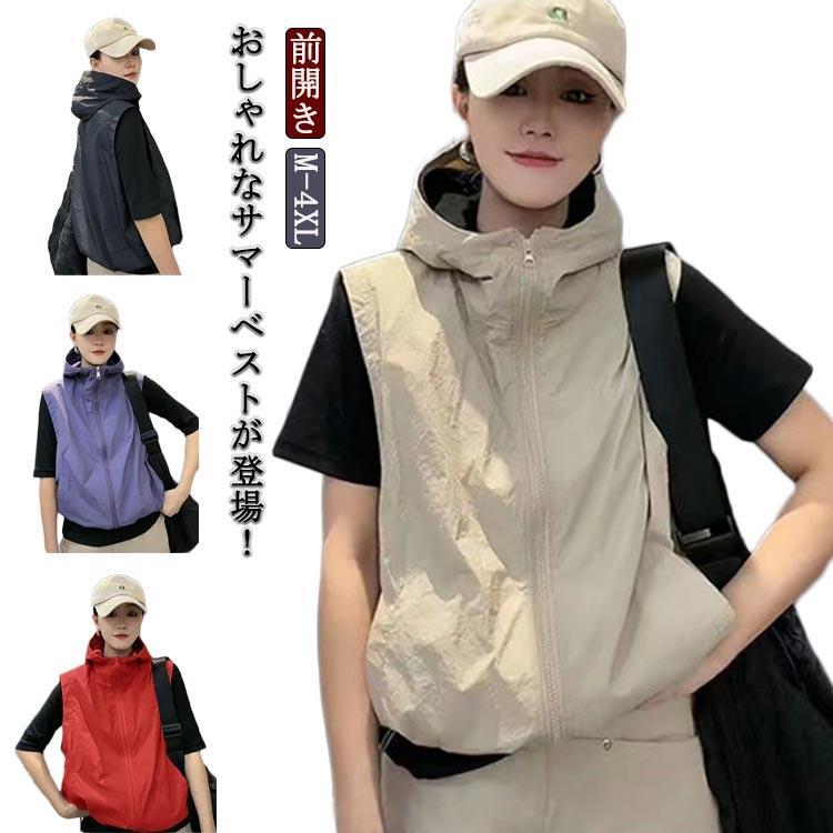 春 アウター ゆったり シンプル 無地 大きいサイズ 半袖パーカー 春夏 レディース フード付き ベスト 涼しい きれいめ トップス ジップアップ 送