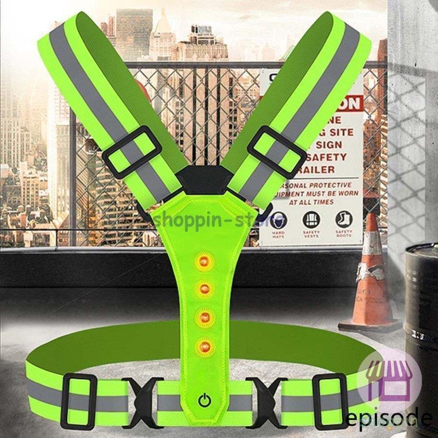 安全ベスト 反射ベスト LEDライト付き リフレクター ベルトリフレクション チョッキ 3つの照明モード 夜間作業服 調整可能 男女兼用 工場 工事現場用 ジョギング