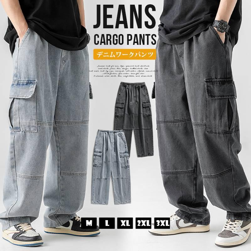 デニムパンツ カーゴパンツ メンズ ゆったり 大きいサイズ ボトムス デニム ミリタリー ワークパンツ ワイドパンツ デニムカーゴ パンツ バギーパンツ ジーパン ジーンズ おしゃれ カジュアル ダンス衣装 ヒップホップ ストリート系 春 夏 秋 冬