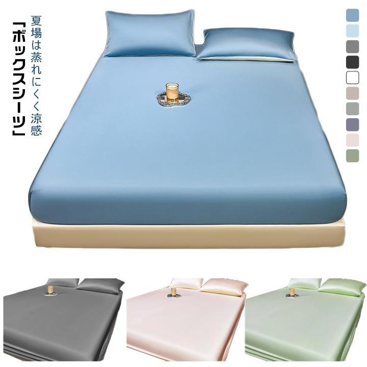 冷感 サテン ボックスシーツ シルクみたい光沢 夏用 セミダブル ボックスシーツ ツルツル ベッドカバー マットレスカバー ベッドシーツ 素肌にやさし