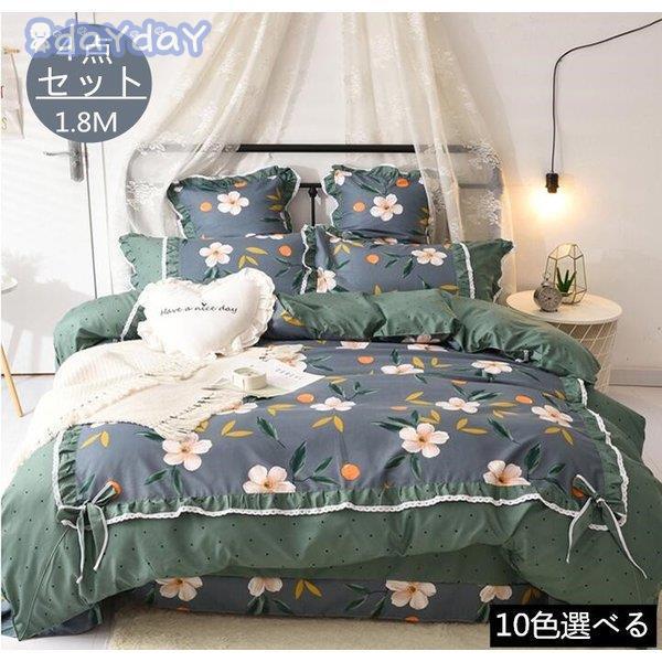 寝具セット 布団カバーセット 4点セット 布団カバー 枕カバーシーツ シートセット ダブル ベッド用 花柄 洗える おしゃれ お姫様風