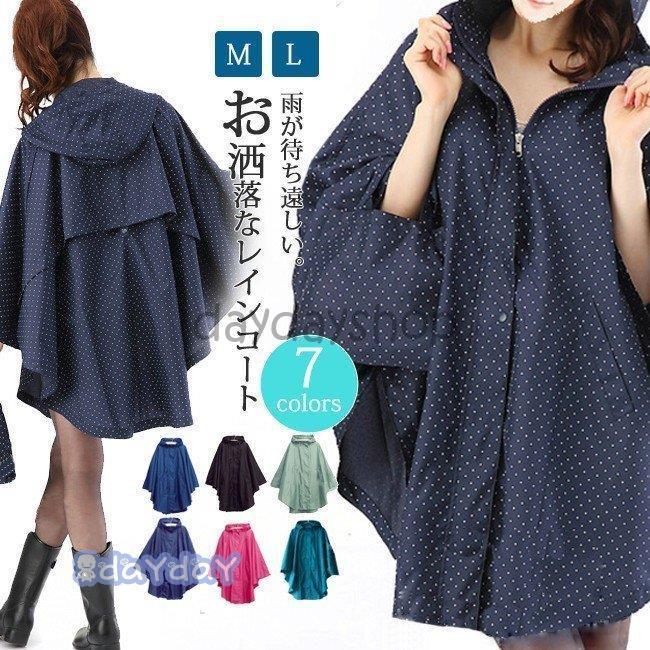レインポンチョ 前開き 自転車 レディース ママ メンズ ミディアム丈 軽量 撥水 防水 つば付き 無地 ドット柄