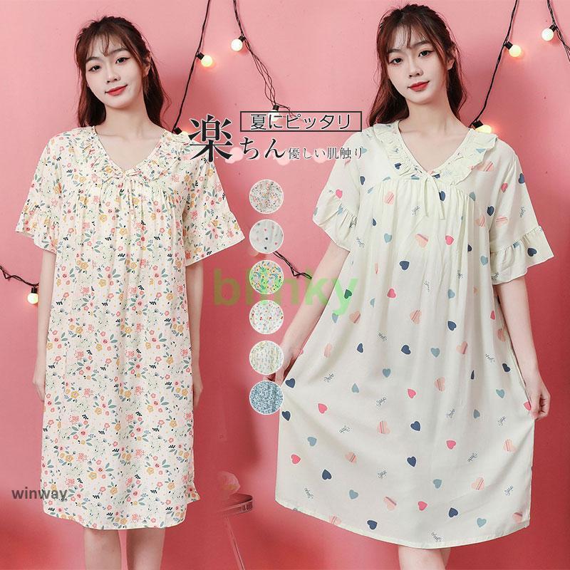 ネグリジェ フリル 花柄 ワンピース ゆったり 夏 春 ワンピース半袖 ロング レディース 寝巻き 部屋着 体型カバー可愛い