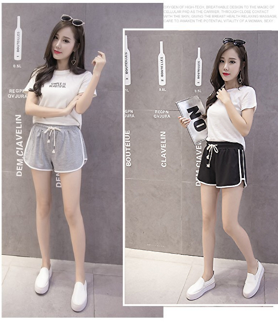 ショートパンツ レディース ルームウェア ハーフパンツ ウエストゴム ジャージ スウェット 短パン 部屋着 ラインパンツ 黒 グレー 051