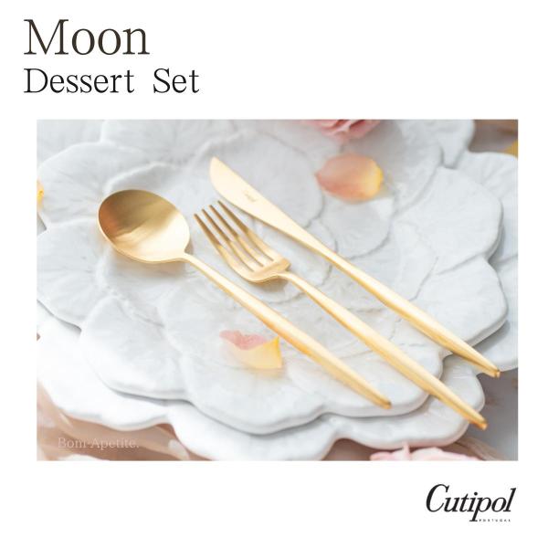 爆買【正規品:国内正規取扱店】ムーン デザート【 マット 】ゴールド マットゴールド クチポール 3点セット 【 正規品 】 3本セット 一人用 Cutipol moon gold matte 金色 カトラリー デザートセット カトラリーセット 一人暮らし お祝い 誕生日 新生活 実用的