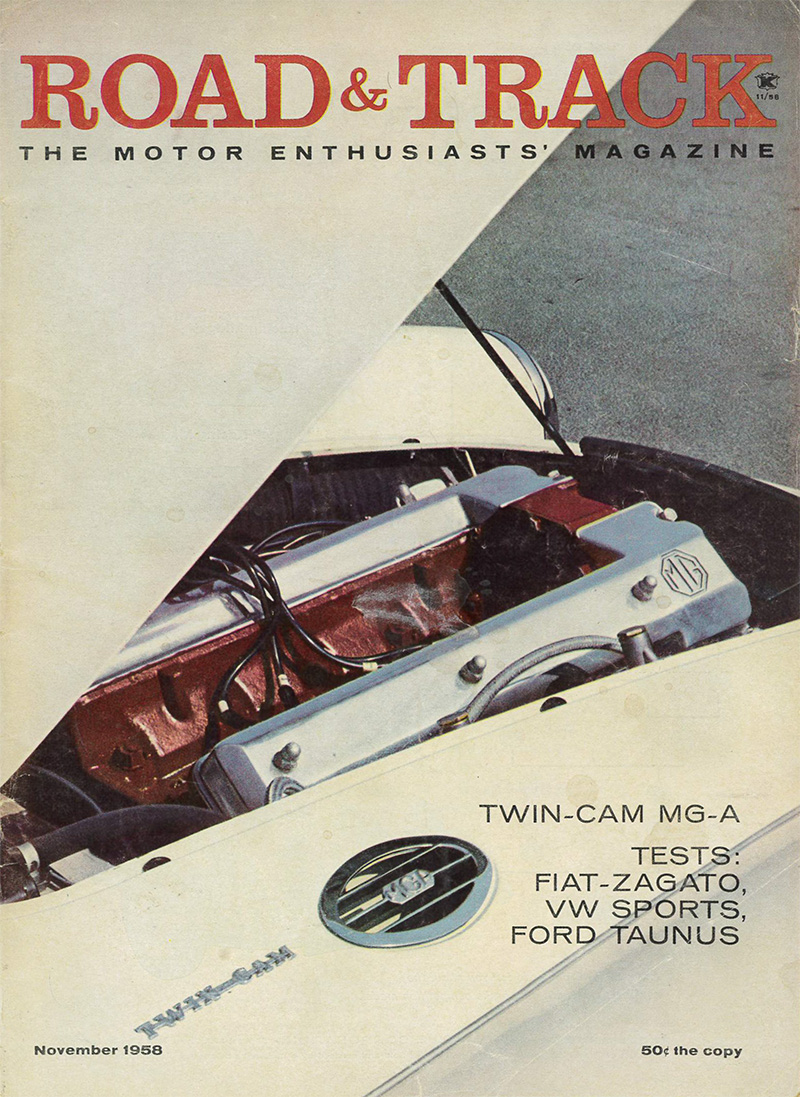 ビンテージ アメリカ 当時物 洋書 road&track 1958年 11月号 フィアット ワーゲン MGA 英フォード ジャガー ベンツ オールディーズ