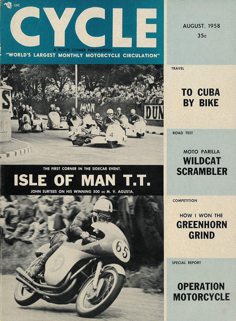 ビンテージ洋書アメリカ雑誌 cycle 1958年8月号 モトクロス レース ダート ハーレー マン島 インディアン トライアンフ BSA