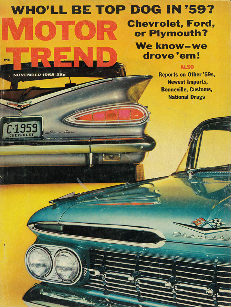 ビンテージ アメリカ雑誌 洋書 motor trend 1958年 11月号 アメ車 ヨーロッパ車 1959年新車見比べ インパラ