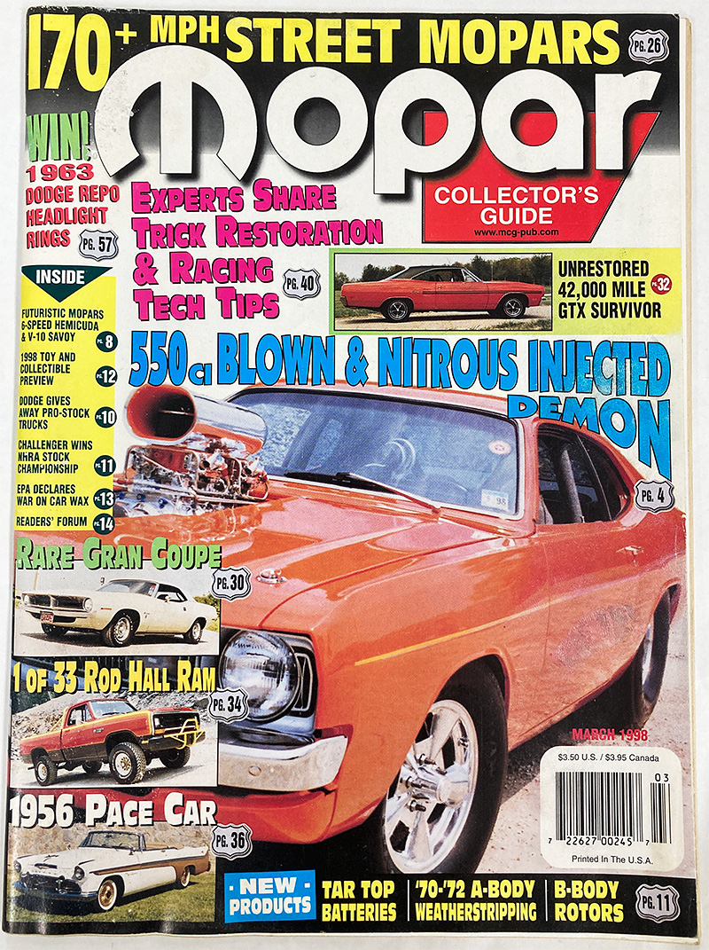 ビンテージ アメリカ雑誌 洋書 mopar collector's guide 1998年 4月号 アメ車 カスタム ホットロッド クライスラー ダッジ プリマス