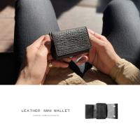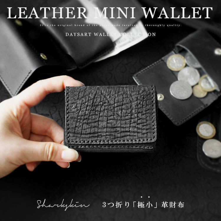 三つ折り財布 ミニマルウォレット メンズ レディース ユニセックス 本革 オーストラリアオイルレザー シャークスキン 小銭入れあり