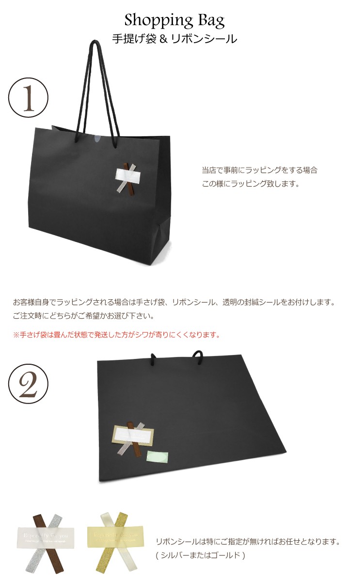 カラー:手さげ袋:ブラックリボンシール:シルバーまたはゴールド