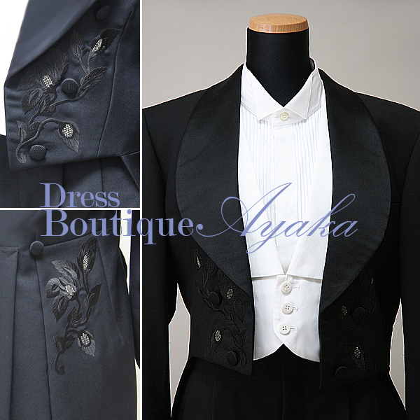 男の優雅さと上品さを演出する装飾のブラックテールコートです。