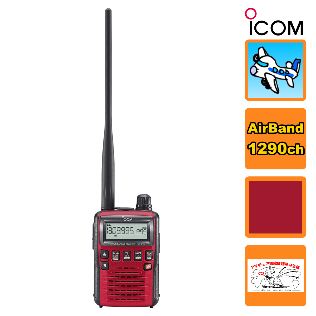 IC-R6 RED メタリックレッド エアーバンドスペシャルVol.2 アイコム 広帯域ハンディレシーバー 送料無料