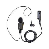 衣類の襟元などにクリップで装着して手動による送信が可能。カナルタイプのイヤホンが付属します。