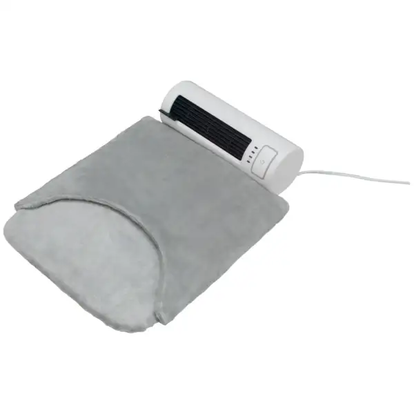 上部のセラミックファンヒーターが空間を温め下部のホットマットが足元を同時に温めます