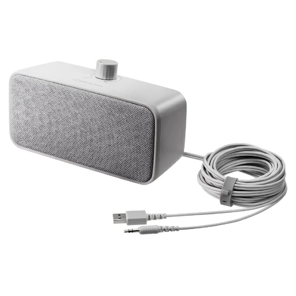 お持ちのテレビにコードをつなぐだけ。いつでも手軽に使えるお手元スピーカー