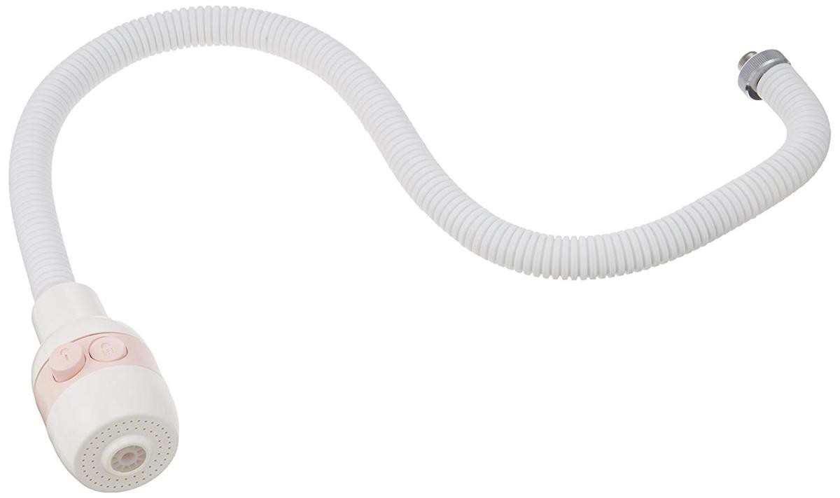 ボタンでシャワー・ストレートに切り替えが可能。湯が飛び散らず、大きな食器もらくらく洗える。