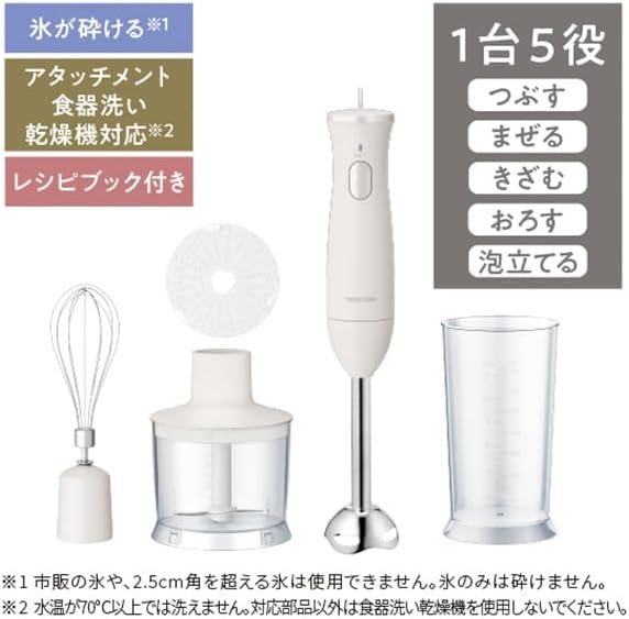 テスコム ハンドブレンダー つぶす まぜる きざむ おろす 泡立てる 食洗器対応 ラク抜きプラグ レシピブック付き 離乳食 金属製 TBL30A-W