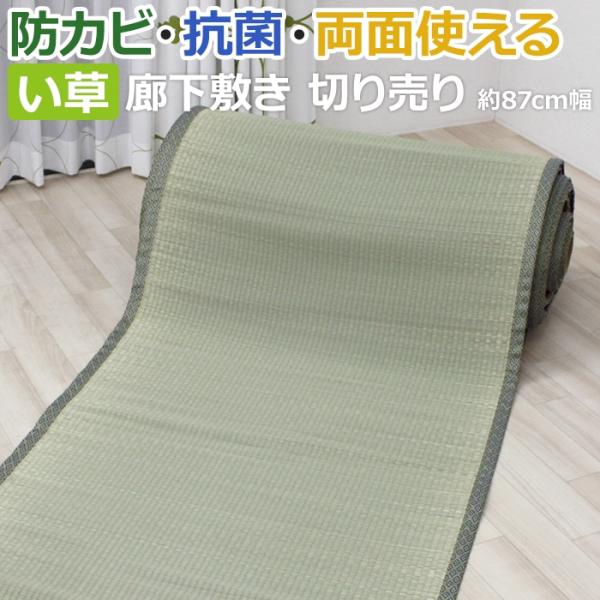 い草 廊下カーペット 廊下敷き 防カビ 抗菌 イ草 ござ 縁側 夏 両面使える いぐさ 畳 マット 双目織 約87cm幅 切り売り (1mあたり) 青葉 (Y) ポイント利用