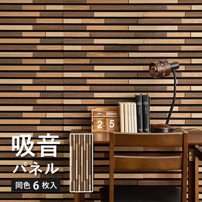 吸音パネル おしゃれ 壁 ウッド調 防音パネル 賃貸 吸音材 DIY スラットウォール 木目 消音 約30×80×2.6cm 吸音パネル イパネッラ 6枚組 モザイク (H)
