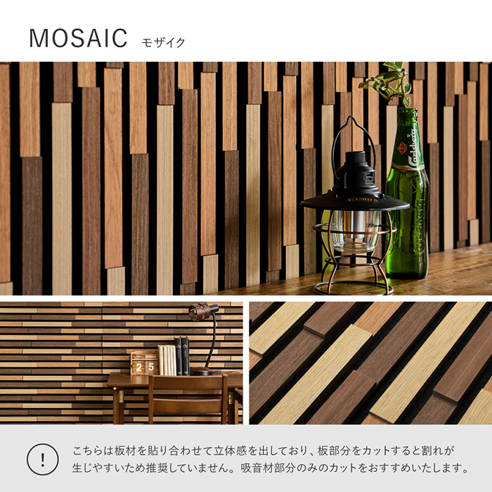 ・モザイクは仕様上、板部分をカットするとはがれや欠けの恐れがあるためカットを推奨していません。吸音材部分のみのカットをおすすめいたします。