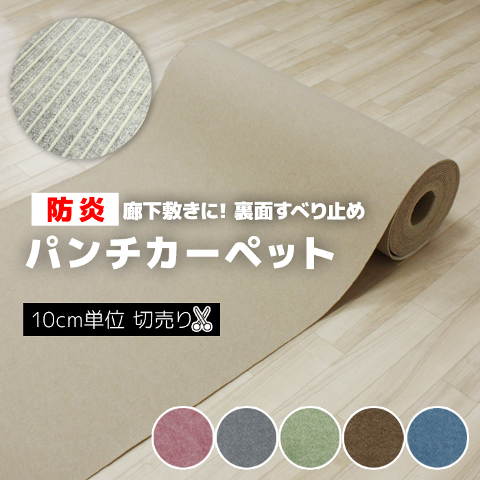 日本製 パンチカーペット 防炎機能 吸着加工 滑り止め カット売り 切り売り (10cmあたり) 住宅用 約180cm幅×10cm単位 リック吸着パンチ (R) 引っ越し 新生活