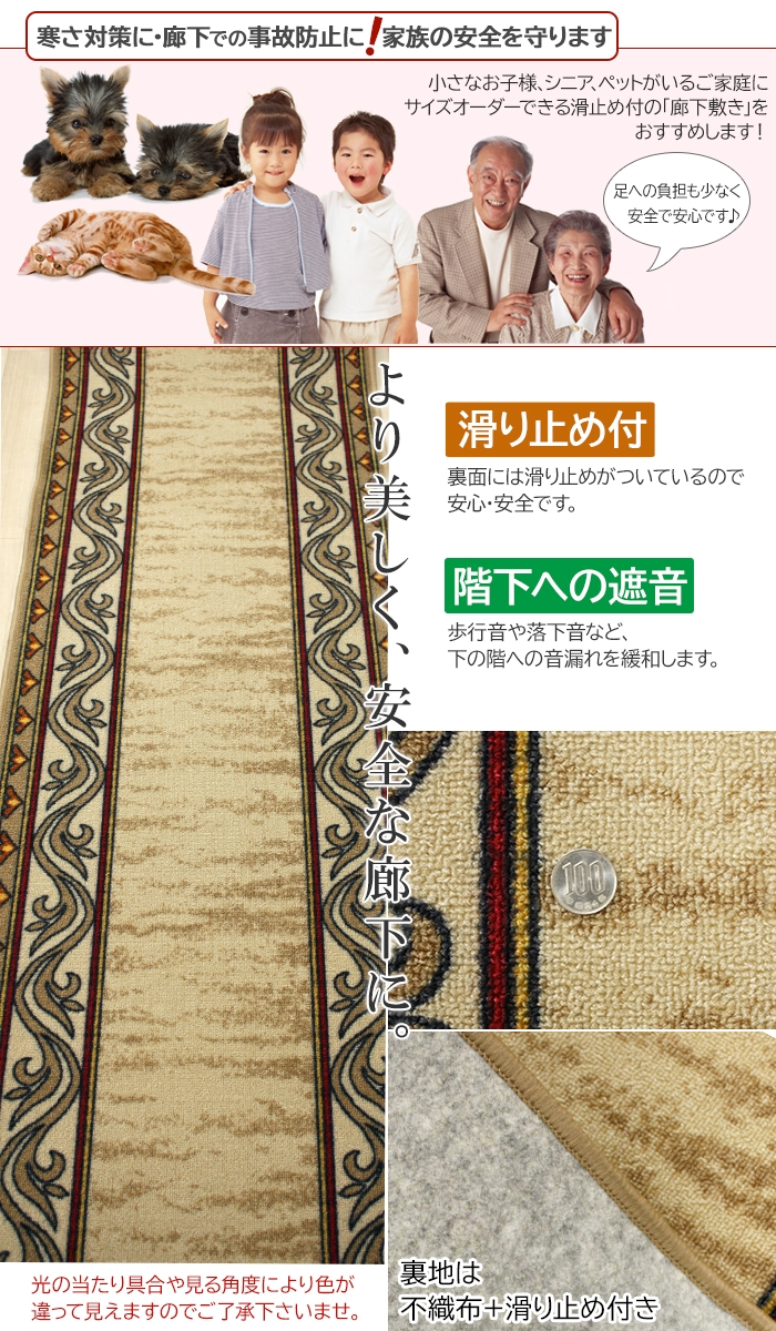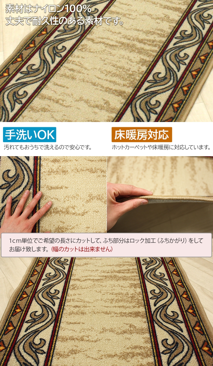 | オーダー廊下敷きカーペット オーダーキッチンマット 滑り止め付 リリアン(Y) 約80cm幅 切り売り |
