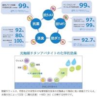 怖いウィルスや細菌、つらい花粉などのアレルゲンを、「光触媒チタンアパタイト」の力で二酸化炭素や水に分解します。