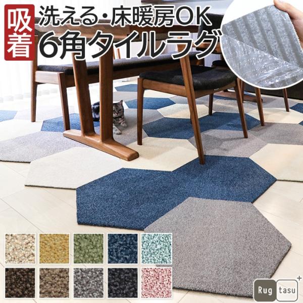 洗える 吸着タイル Rugtasu ヘキサゴン(R) 約50×43cm 六角形