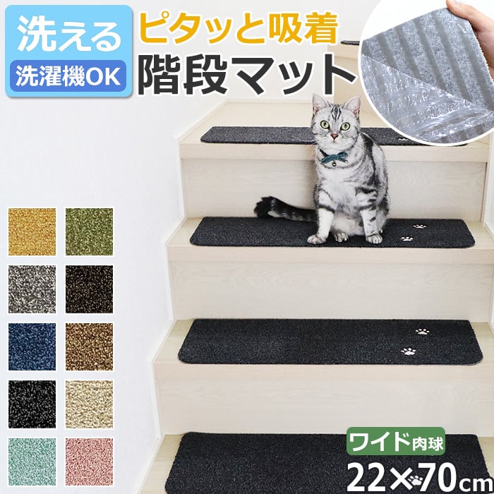 洗える ラグタス 階段マット てくてく肉球 (R) 約22×70cm 10枚以上1枚単位で販売 (1枚あたりの価格) |