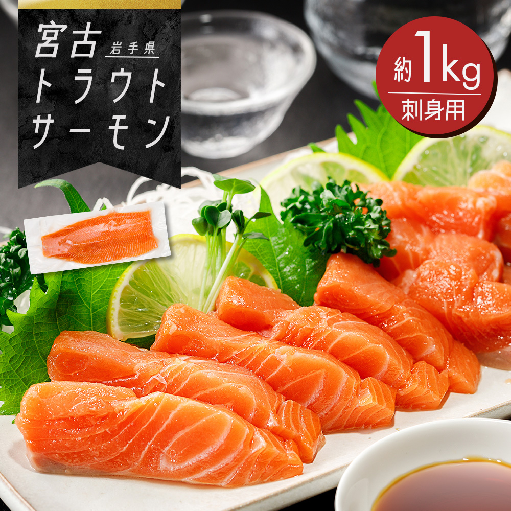 岩手県産 宮古トラウトサーモン 約1kg お刺身用 骨なし 皮なし 冷凍 / 生食用 フィレ 鮭 マス 魚介類 シーフード グルメ サケ 養殖 ご当地サーモン