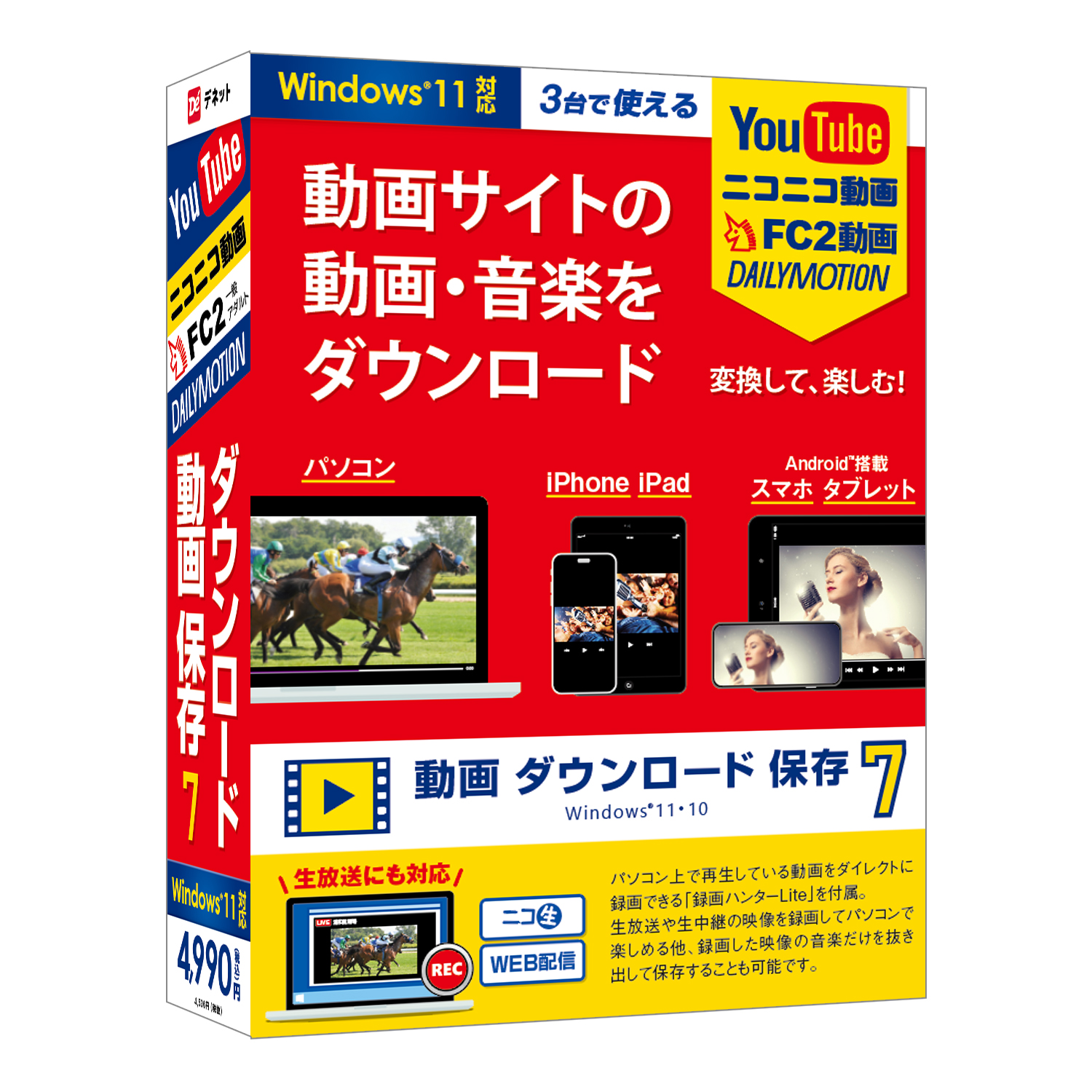 ※パソコン上への保存、iTunes、Android搭載端末へ保存以外の操作(対応形式以外の変換・転送機能、CD・DVDへライティング、動画サイト等へ投稿機能)は備わっておりません。