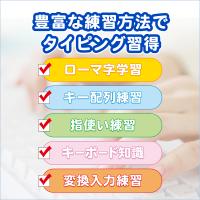 ローマ字を知らない小学生からタイピング初心者の高齢者まで安心できる内容になっており、ローマ字の綴りや指使いの練習からタイピングの実践練習まで段階的に学ぶことができます。