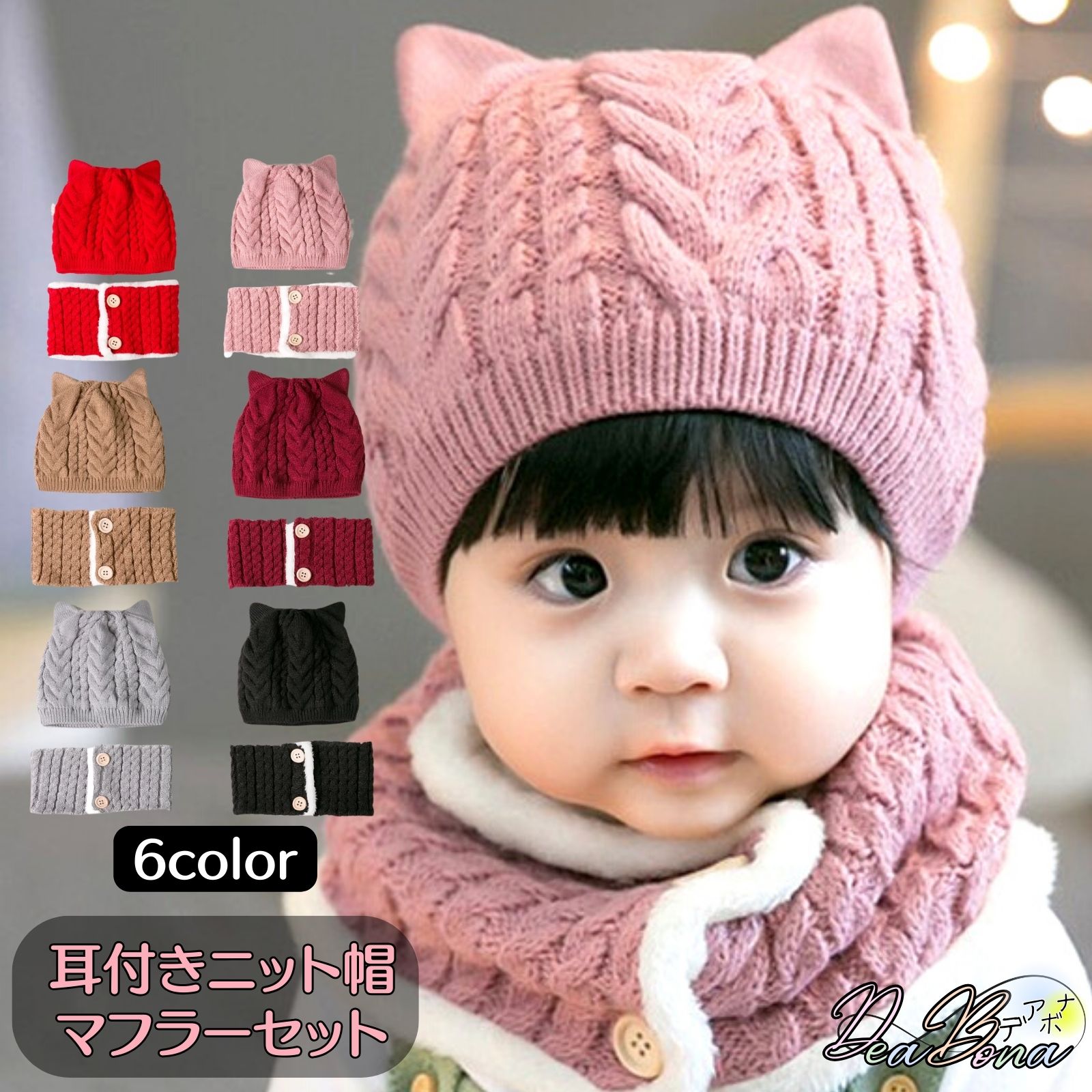ベビー キッズ ニット帽 帽子 マフラー ネックウォーマー もこもこ ボア ファー 耳付 防寒 あったか 頭巾 男の子 女の子 男女兼用 秋 冬