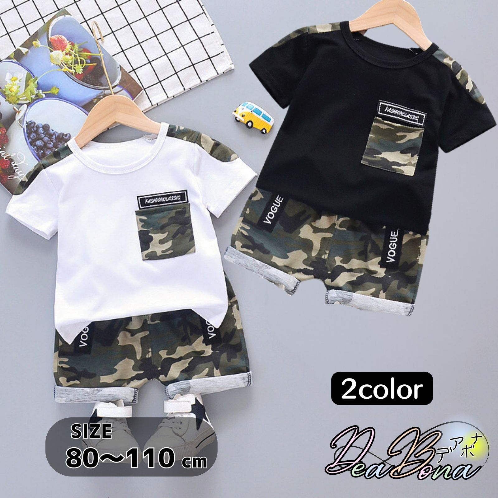 子供服 セットアップ 上下セット 半袖 Tシャツ 半ズボン 男の子 キッズ 迷彩 ミリタリー 80 90 100 110