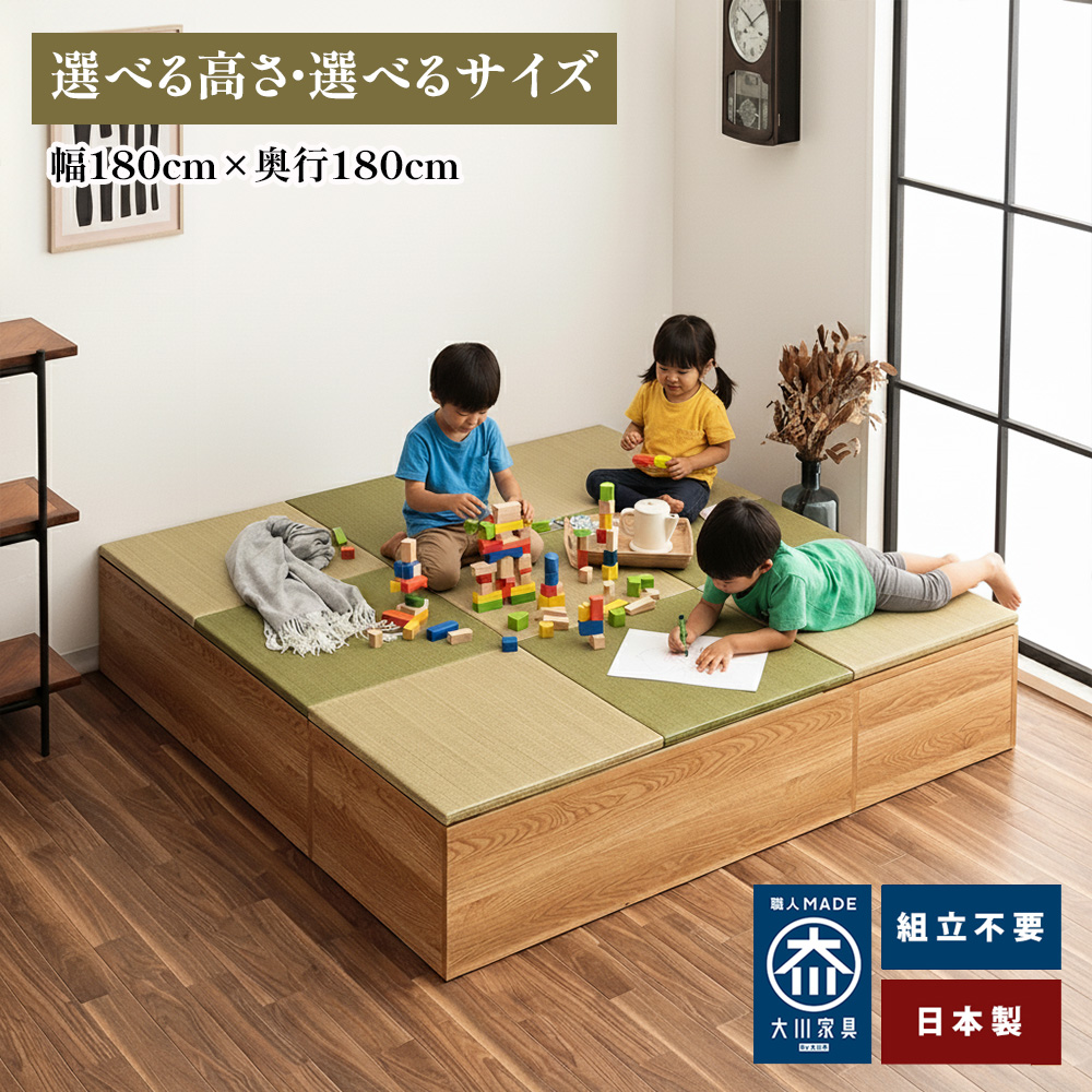 清風 | 小上がり ユニット畳 高床式ユニット畳 収納 畳ボックス 180cm×180cm 【 畳 置き畳 たたみ マット い草 日本製 大川家具 高床式 完成品 こあがり