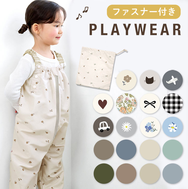 はっ水 ファスナー やわらか プレイウェア 調整可能 80-100cm対応 お砂場着 遊び着 つなぎ 撥水 砂場着 80 85 90 95 100 ベビー キッズ dk106